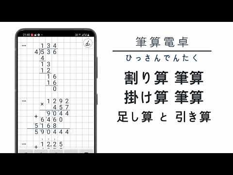 Androidアプリです。電卓は筆算、割り算 筆算、掛け算 筆算をするために作られました。紙に書いて計算するように、計算方法を簡単に見つけることができます。
