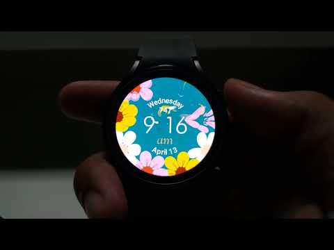 3. スマートウォッチで現在のAndroidアプリです。ウォッチフェイスを長押しし、スクロールしてGalaxy DesignのAndroidアプリです。Flower Animatedを選択します。