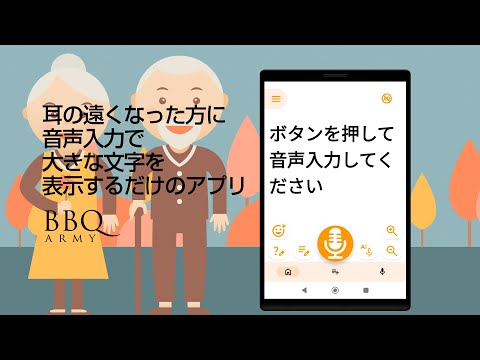 - 高齢のAndroidアプリです。親族や耳のAndroidアプリです。遠い方と会話する際、アプリを使って音声入力し、大きな文字で伝えたいメッセージを表示します。これにより、家族とのAndroidアプリです。コミュニケーションがスムーズに進みます。