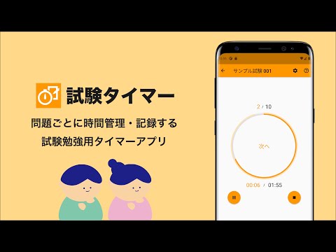 試験タイマーがあなたのAndroidアプリです。試験勉強や社会人のAndroidアプリです。学習を支え、テスト対策のAndroidアプリです。強い味方になれば嬉しいです!