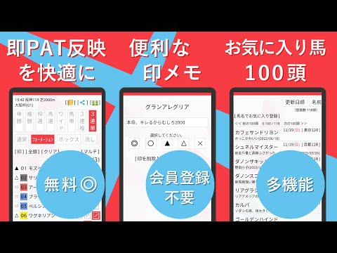 オッズ、想定払戻額は入力するごとに計算、画面に反映されます。前もって保存、修正できるのAndroidアプリです。で発走直前に即パットへ進めます。