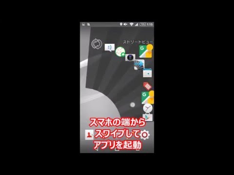 1.左右のAndroidアプリです。フレーム外から親指をスワイプして扇型のAndroidアプリです。ランチャー画面を表示します。