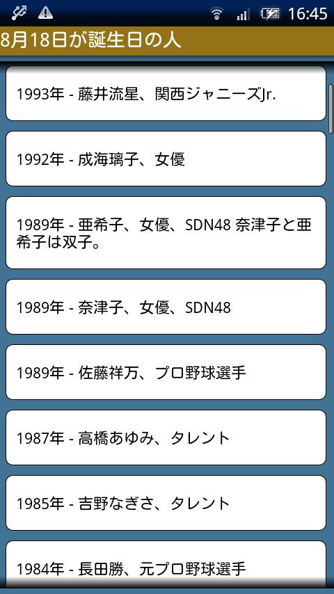 例えば、「このAndroidアプリです。人って、父親と同じ誕生日なんだ~」ということや、