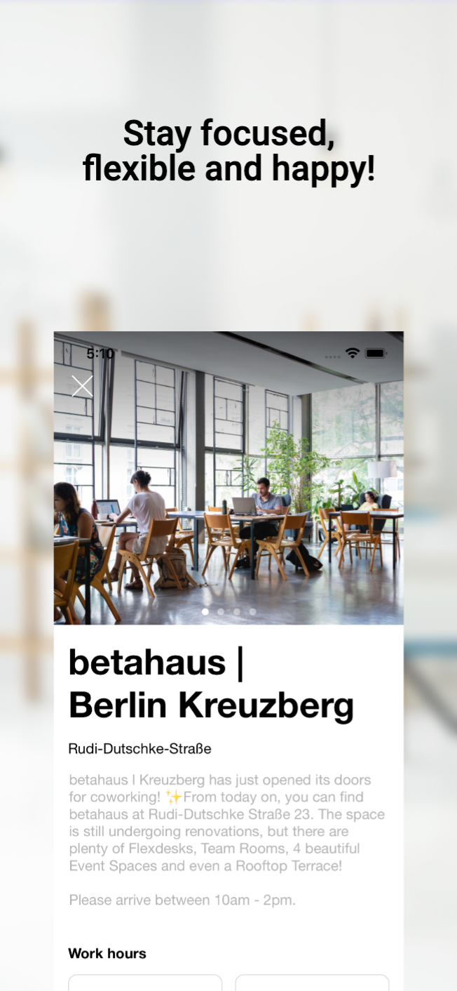 Androidアプリです。仕事に関連して、最も生産的で、幸せで、健康に感じることができるスペースを選びたいと思っています。私たちは、より多くの