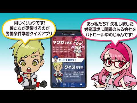 ストーリーのAndroidアプリです。中で現れる「労働条件(RJ)アウト」を指摘し、労働条件に関する法律を学ぼう!
