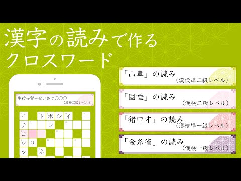 Androidアプリです。クロスワードパズルなら、読めないと恥ずかしい(?)簡単な漢字から、難しい読み方の