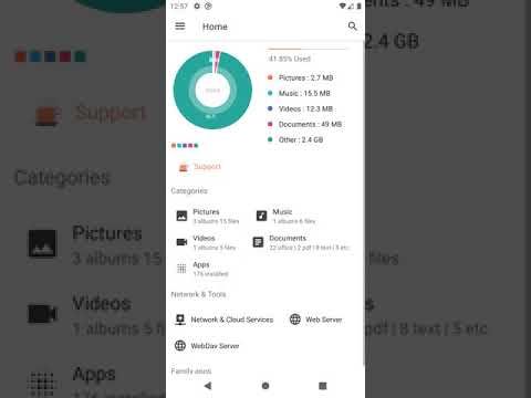 Androidアプリです。ファイルとフォルダーを簡単に管理できます。また、WebサーバーとWebDAVサーバーを使用してファイルを共有できます。