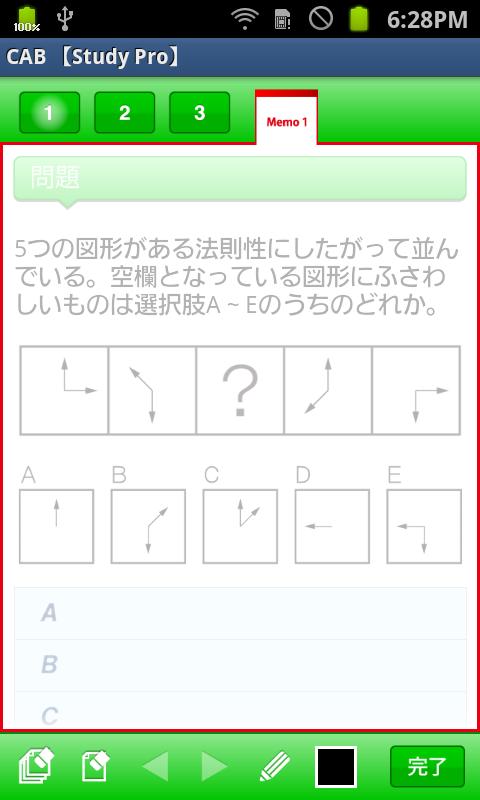 このAndroidアプリです。アプリ“CAB(SPI) 【Study Pro】”は、リクルート社のAndroidアプリです。適性検査「SPI2」ではなく、SHL社のAndroidアプリです。適性検査「CAB」を対策するためのAndroidアプリです。アプリです。