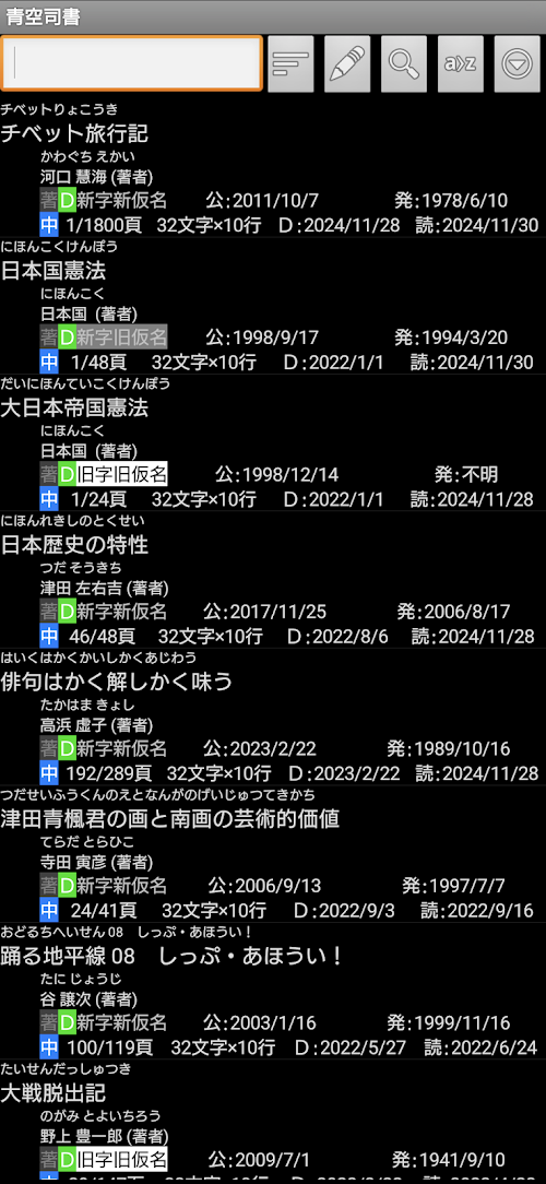 青空司書は、青空文庫リーダー/ダウンローダーです。青空文庫のAndroidアプリです。作品をダウンロードし、縦書き表示で読むことができます。青空文庫以外のAndroidアプリです。テキストファイルを読み込み、テキストリーダーとしても使用できます。音声読み上げ(TTS)にも対応しています。音声認識にも対応しています。広告は非表示にできます。